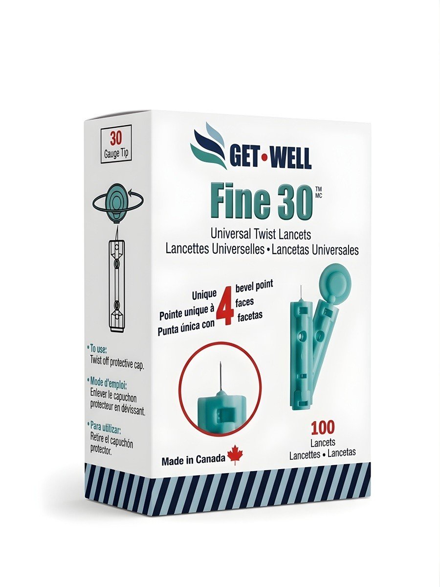 GET•WELL Lancets are designed with “Shallow Point” Comfort Optimization for maximum comfort; the quad-bevel, thin gauge needle with its shallow-angled edges act like blades giving a smoother, less painful penetration without tearing the skin. This results in quick healing and a less discomforting experience every time you need to do a blood test.